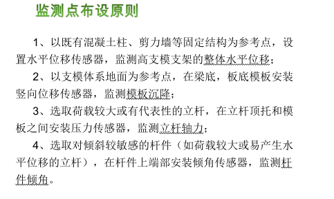高支模監(jiān)測(cè)是采用高新技術(shù)手段從監(jiān)控層面進(jìn)行的安全控制和事故防范,對(duì)高大支模體系進(jìn)行監(jiān)測(cè),為動(dòng)態(tài)設(shè)計(jì)、信息化施工提供依據(jù),從而降低施工安全風(fēng)險(xiǎn)。