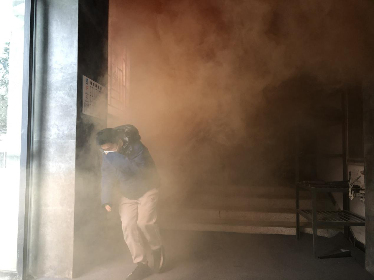消防安全知識培訓結束后,所有參訓員工進行了煙道疏散逃生演練,模擬在濃煙環境下進行疏散自救逃生,在培訓人員的指揮下,參訓員工按照疏散逃生要求,緊張、有序地沿著樓梯撤離到樓下指定區域。