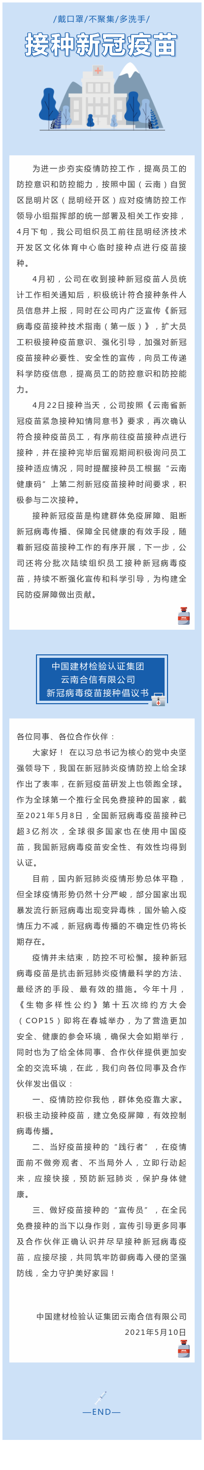 國檢集團·云南合信組織員工接種新冠疫苗