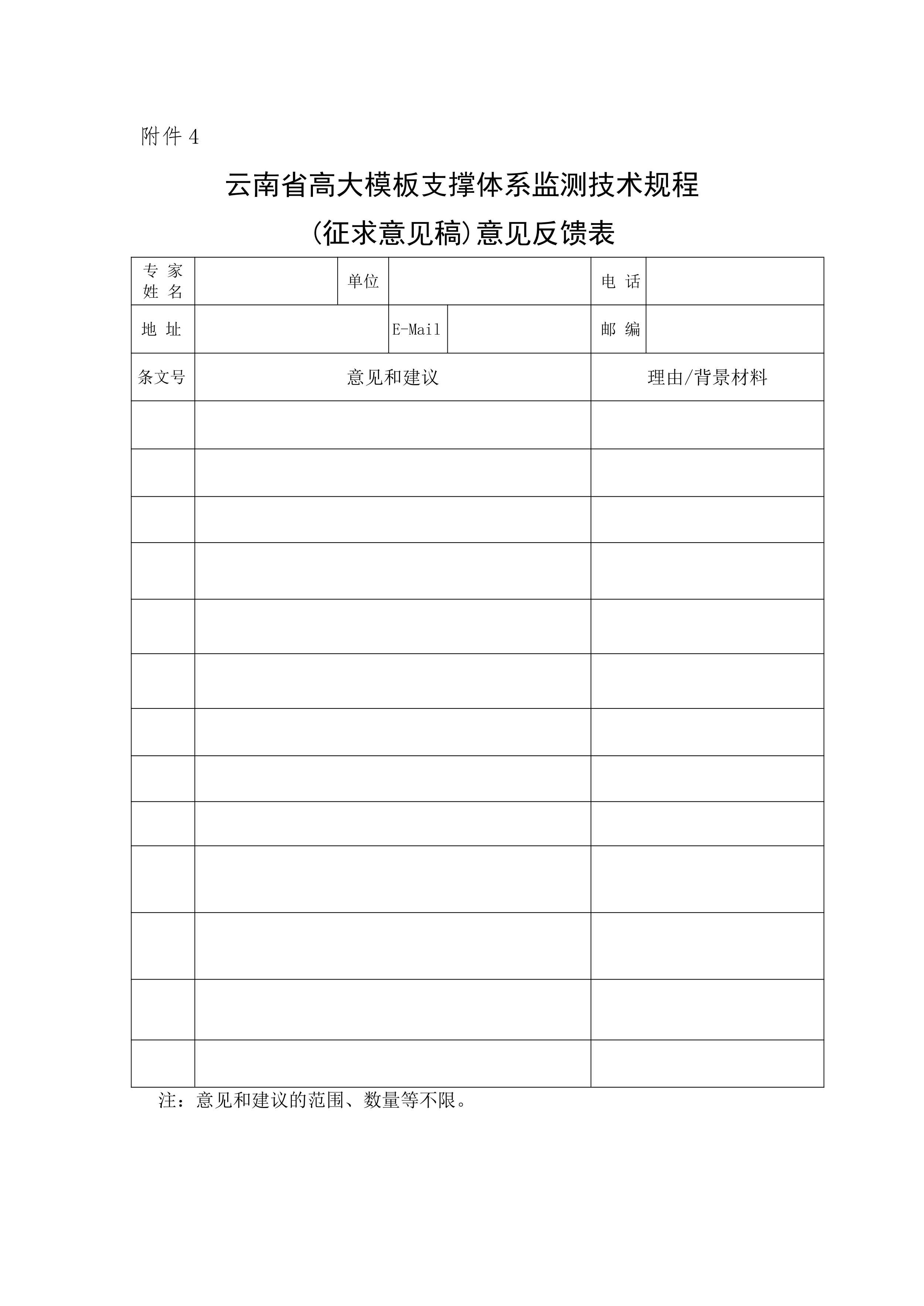 4.云南省高大模板支撐體系監測技術規程(征求意見稿)意見反饋表