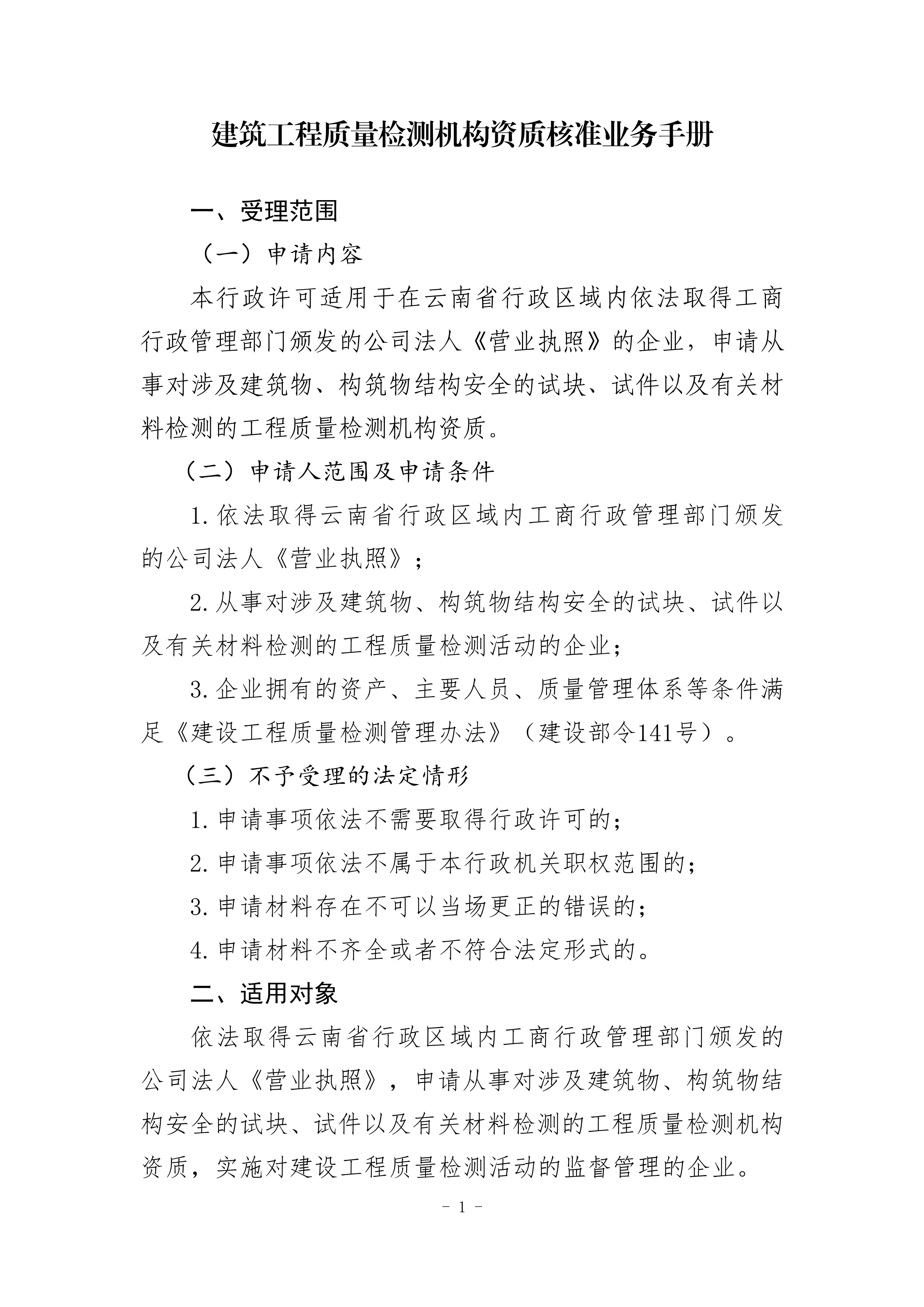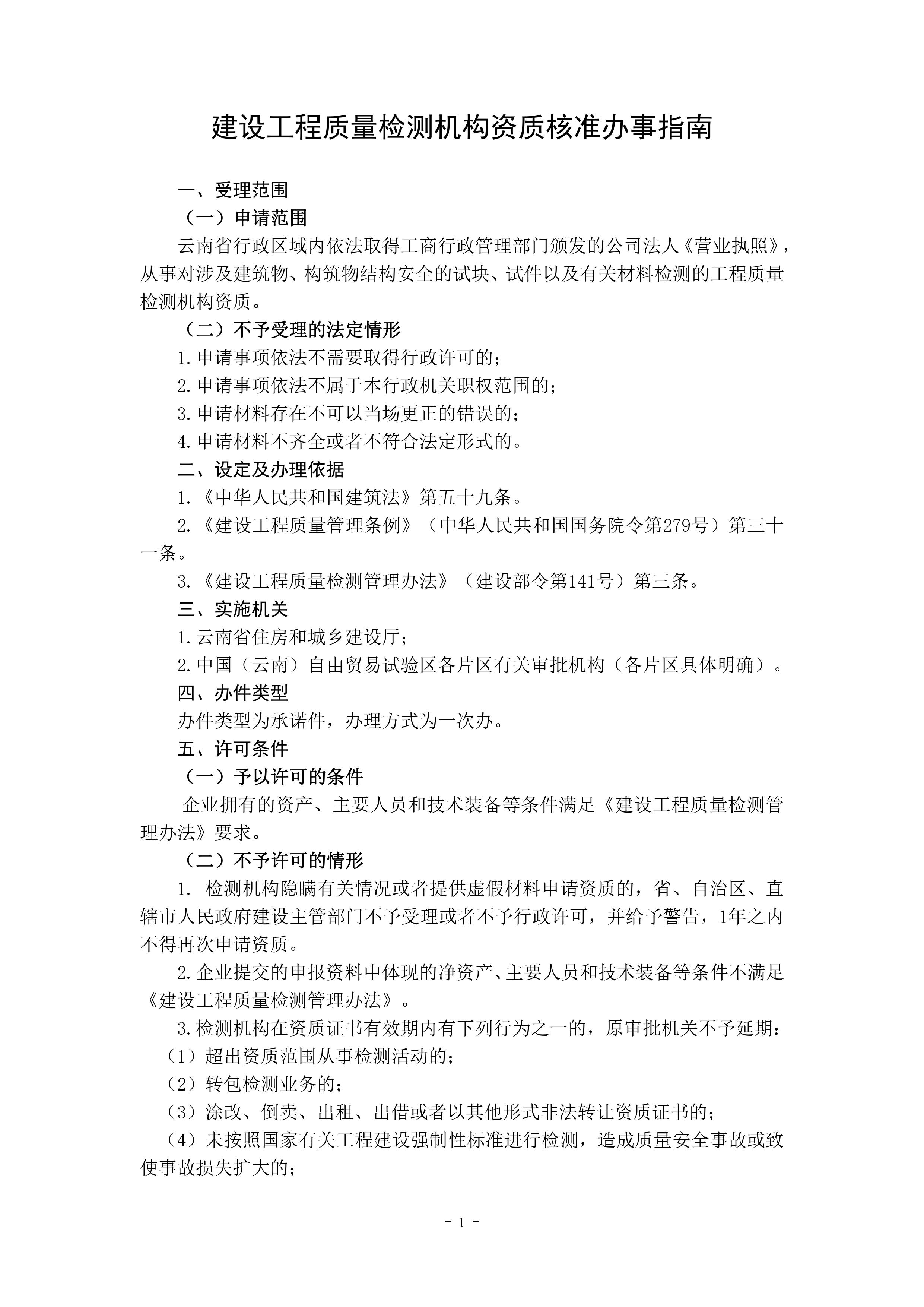 根據《云南省人民政府關于調整482項涉及省級行政權力事項的決定的通知》(云政發〔2020〕16 號)、《云南省人民政府關于調整112項涉及州級及以下行政權力事項的決定》(云政發〔2020〕21號)、《云南省人民政府辦公廳關于公布云南省省級政務服務事項(2020年版) 的通知》(云政辦發〔2020〕39 號)、《云南省人民政府關于向中國(云南)自由貿易試驗區各片區管委會下放第一批省級管理權限的決定》(云政發〔2020〕34號)等文件精神,省住房城鄉建設廳于2021年1月20日對涉及省級下放自貿區各片區的“建筑施工企業安全生產許可證核發”等9項政務服務事項辦事指南和業務手冊進行了編寫或修訂,現將“建設工程質量檢測機構資質核準業務手冊和辦事指南(完整版)”發布如下: