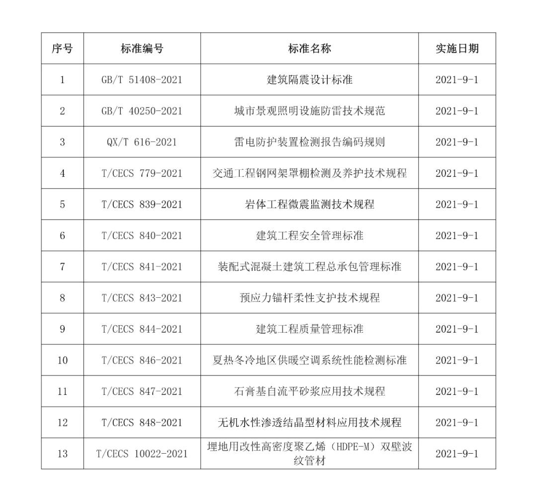 2021年9月開始實施的工程建設標準