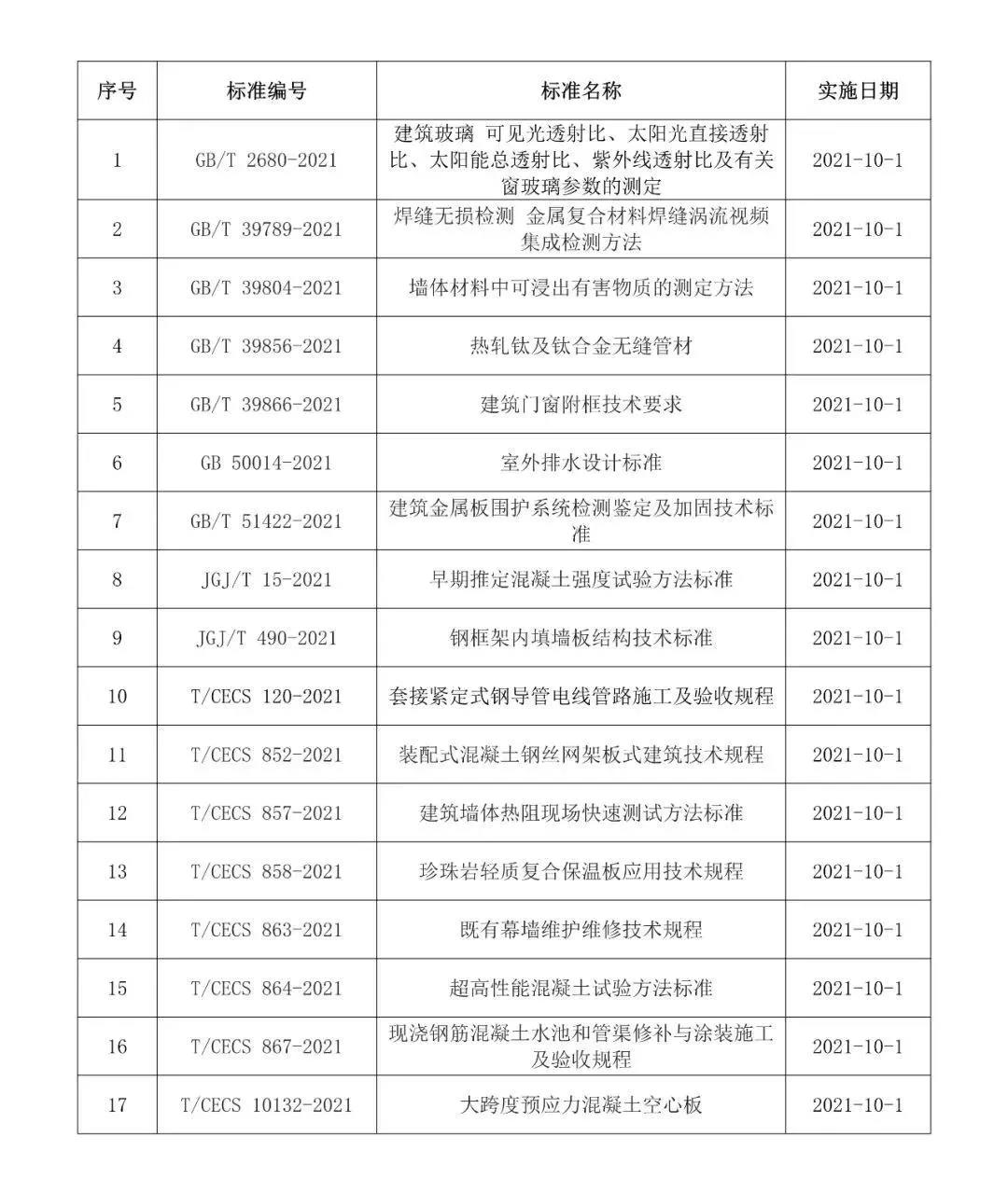 2021年10月開始實施的工程建設標準
