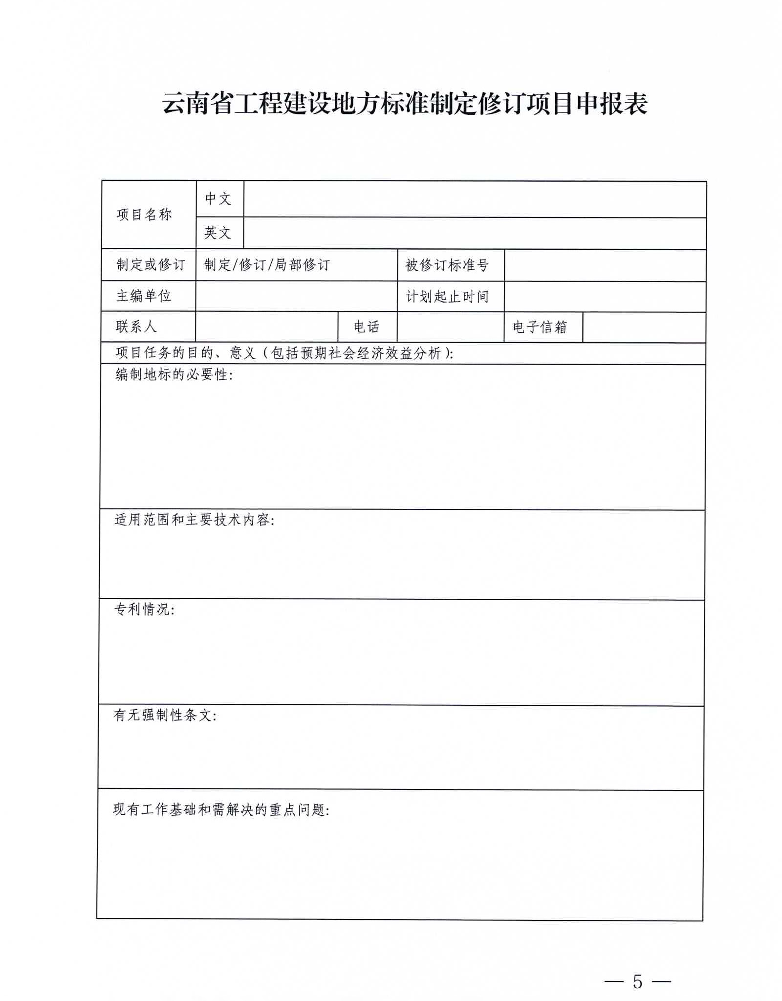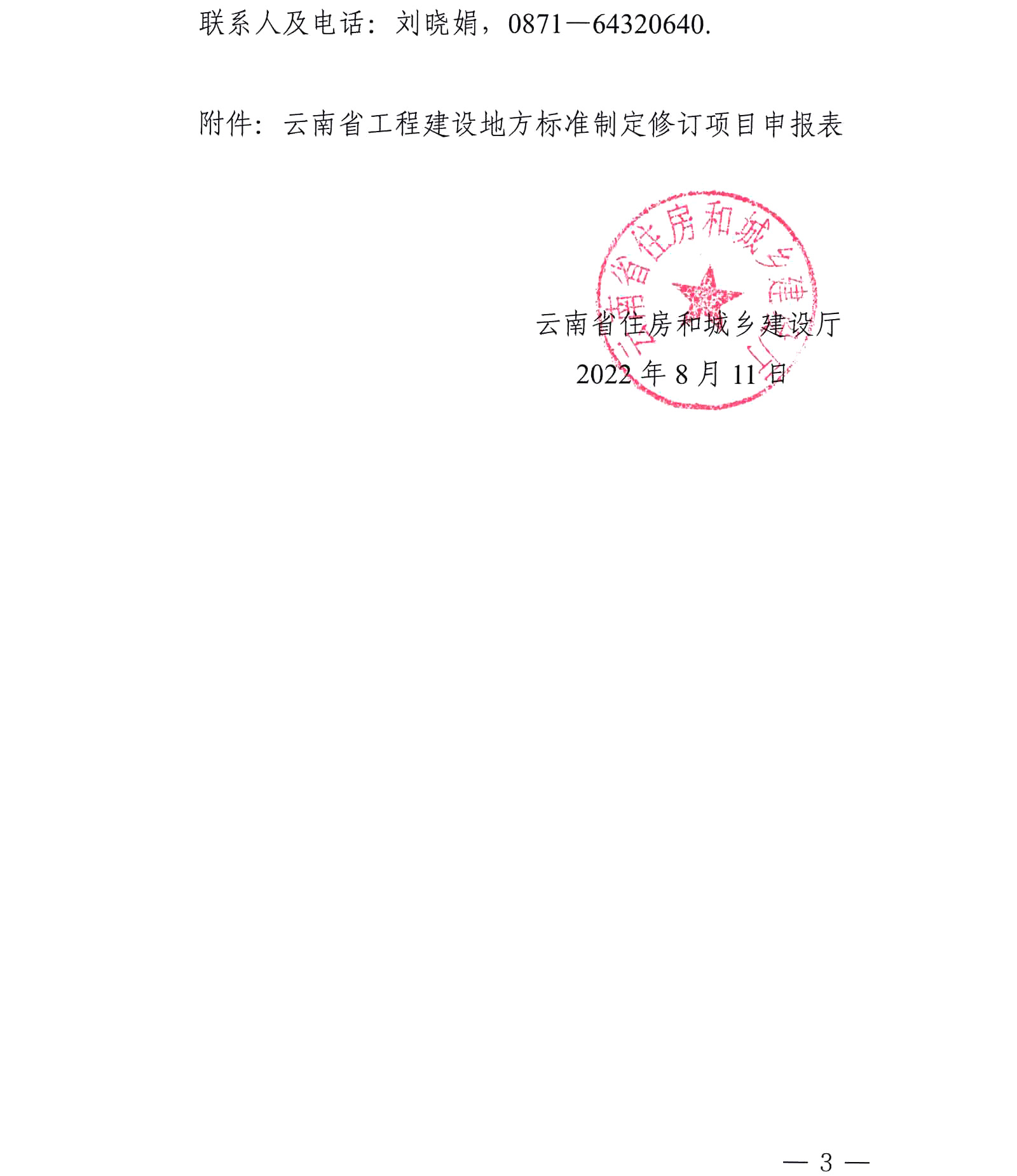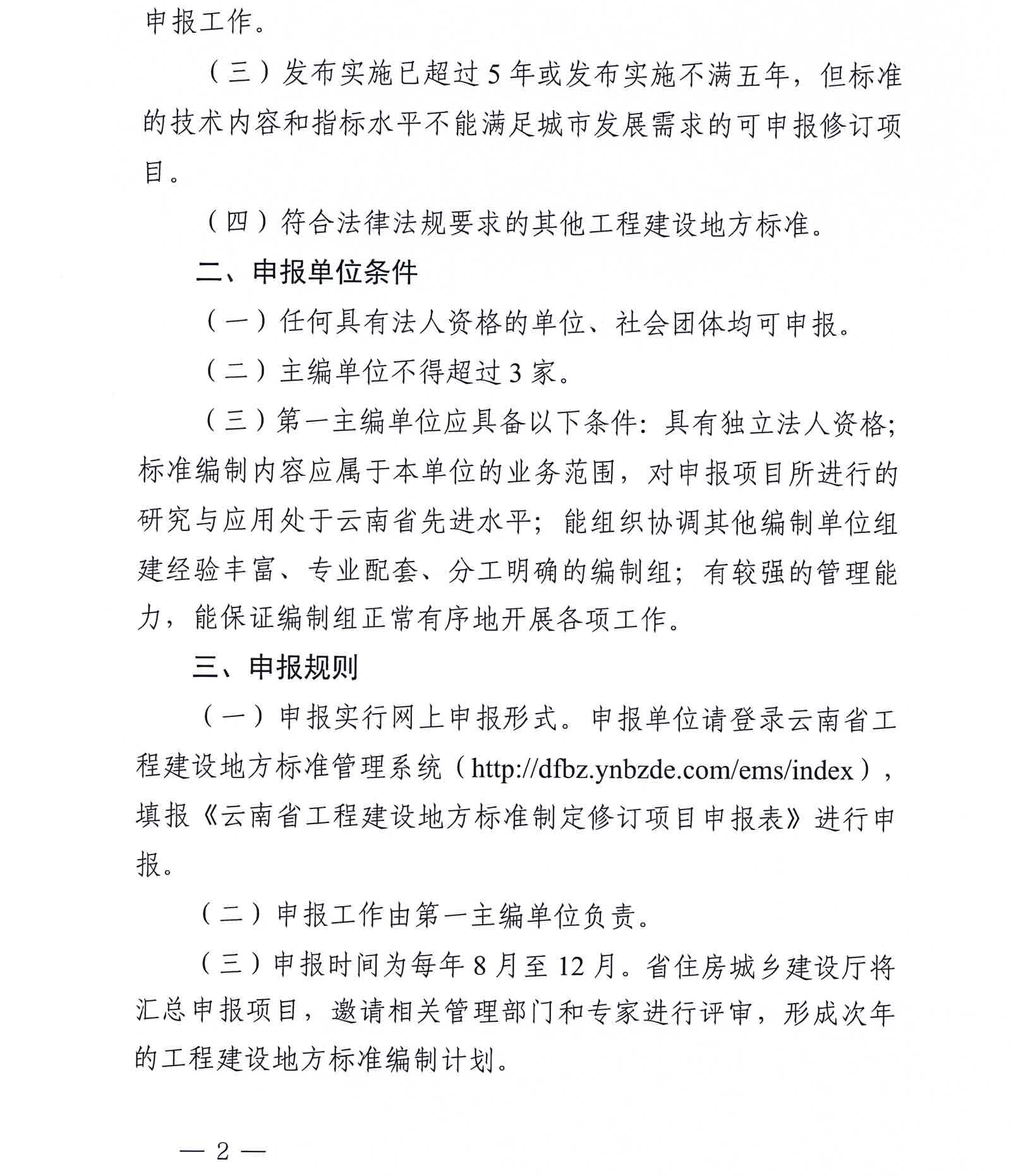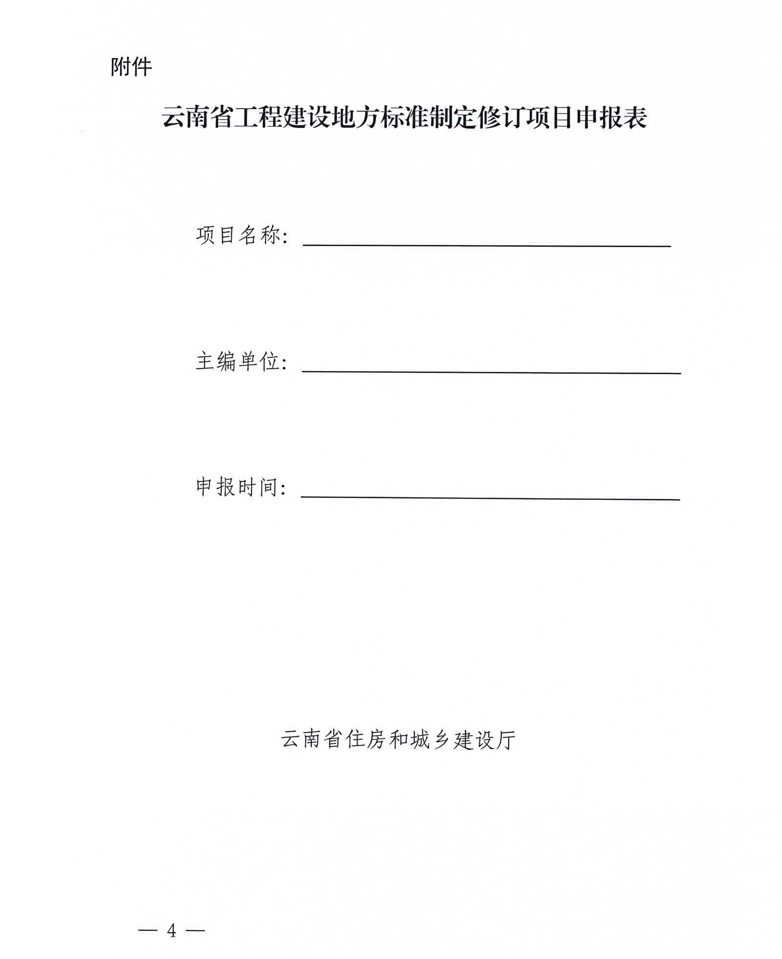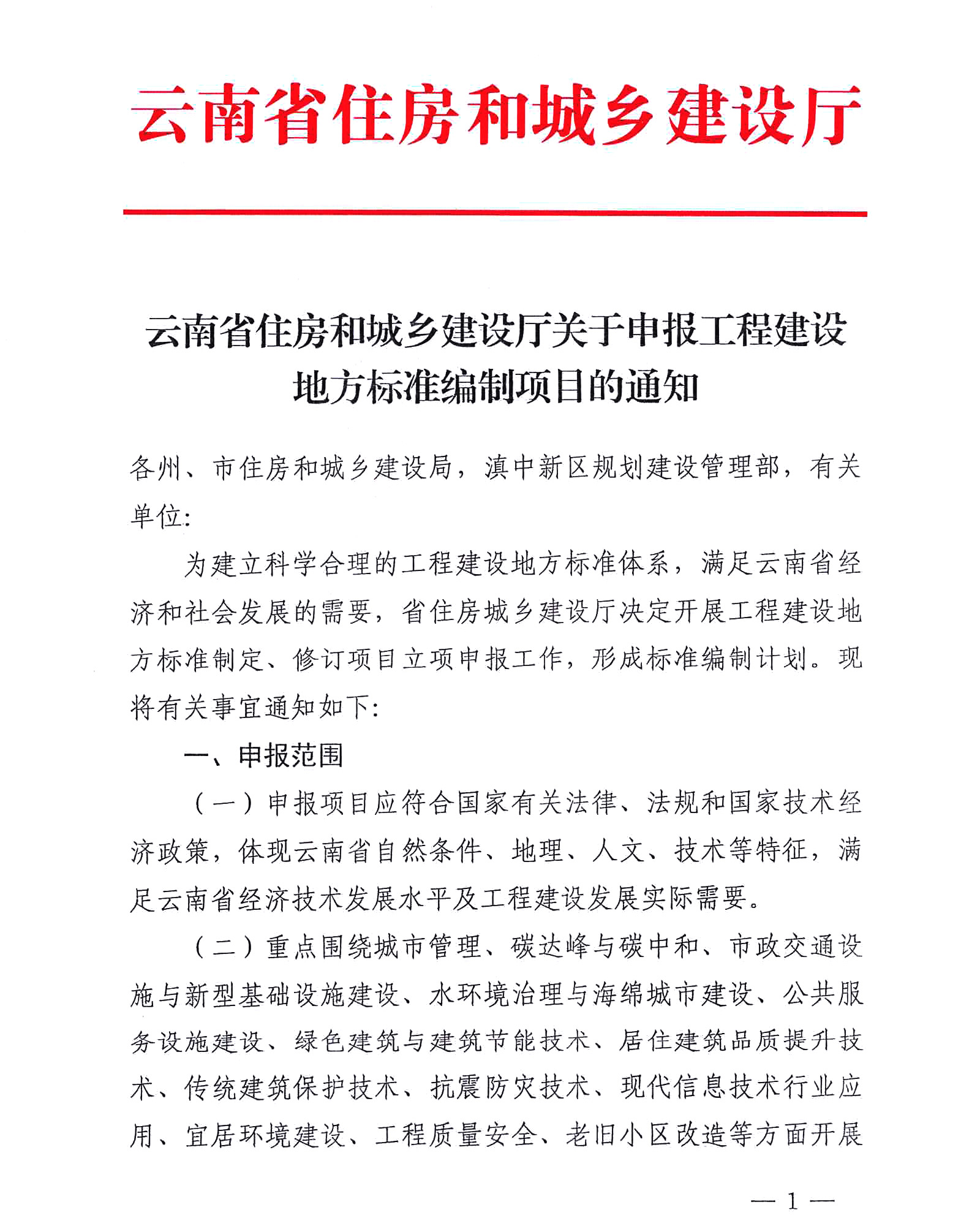云南省住房和城鄉建設廳關于申報工程建設地方標準編制項目的通知