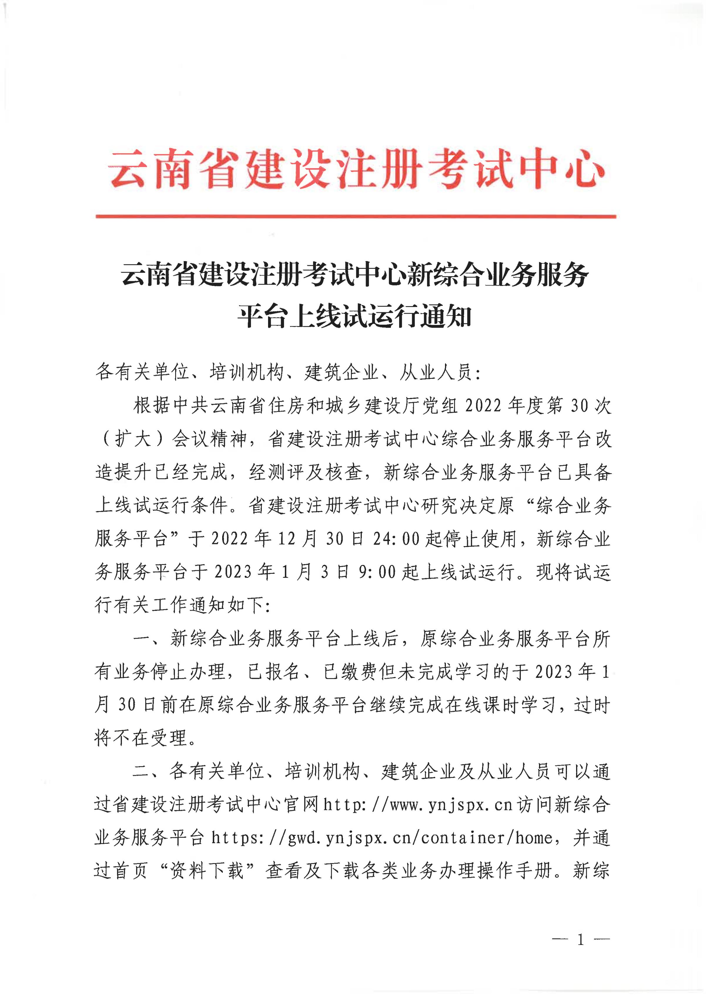 云南省建設(shè)注冊考試中心新綜合業(yè)務(wù)服務(wù)平臺上線試運(yùn)行通知